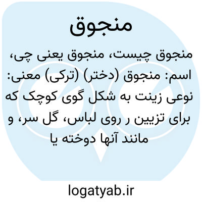 ( اسم ) ۱ - گوی و قبه ای که بر سر رایت ( درفش ) نصب میکردند ماهچه علم. ۲ - علم رایت درفش: [ چو زلف بتان جعد منجوق باد گهی بر نوشت و گهی بر گشاد. ] ( اسدی. رشیدی ) ۳ - رایتی که بر کنگره های برج جهت اعلام نماز جماعت می افراشتند. ۴ - چتر. سایبان ۵ - تاج. ۶ - گوی و زینتهای دیگر که بر بالای منار و برج بعنوان آیین بندی نصب کنند. ۷ - دانه های ریز از جنس شیشه و بلور که زیور جامه سازند.