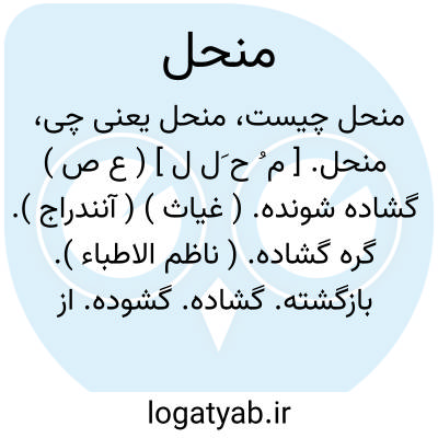 منحل. [ م ُ ح َل ل ] ( ع ص ) گشاده شونده. ( غیاث ) ( آنندراج ). گره گشاده. ( ناظم الاطباء ). بازگشته. گشاده. گشوده. از هم باز شده. ( یادداشت مرحوم دهخدا ).