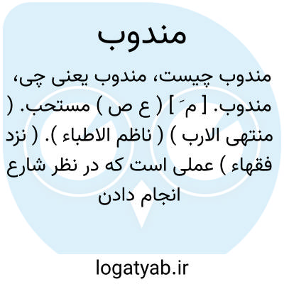 مندوب. [ م َ ] ( ع ص ) مستحب. ( منتهی الارب ) ( ناظم الاطباء ). ( نزد فقهاء ) عملی است که در نظر شارع انجام دادن آن راجح بر ترک آن است اما ترک آن جایز است. ( از تعریفات جرجانی ). || مرده که بر آن گریند و بشمارند نیکیهای وی را. ( منتهی الارب ) ( از ناظم الاطباء ). || ( نزد نحویان ) متفجع علیه به «یا» یا «وا». ( از تعریفات جرجانی ).کسی که بر او تأسف و غمخواری کنند و تأسف خویش رابه لفظ «یا» یا «وا» ادا سازند. و این اظهار تأسف را ندبه نامند و البته لفظ «وا» مخصوص ندبه و لفظ «یا» مشترک بین ندبه و ندا می باشد. و متفجع علیه، یا کسی است که بر فقدان او تأسف خورند و یا کسی است که مرده وابسته به اوست مثل یا زیداه، یا عمرواه، یا حسرتاه، یا مصیبتاه، واویلاه، و حکم مندوب در اعراب و بنا در حکم منادی است و بعضی گفته اند مندوب خود در حکم منادی است. ( از کشاف اصطلاحات الفنون ). نزد نحویان منادای مندوب آن است که بدان تفجع و اظهار درد شود به لفظ «یا» و «وا» مانند «واویلا». ( فرهنگ علوم نقلی تألیف سجادی ). || لفظی که در حالت مصیبت یا گریه به طریق نوحه متلفظ نموده شود. ( غیاث ) ( آنندراج ). لفظی که در حالت مصیبت و یا گریه به طریق نوحه تلفظ کنند. ( ناظم الاطباء ). || خوانده شده و برانگیخته شده. ( ناظم الاطباء ) ( از اقرب الموارد ).