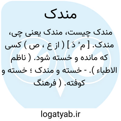 مندک. [ م ُ دَ ] ( از ع، ص ) کسی که مانده و خسته شود. ( ناظم الاطباء ).