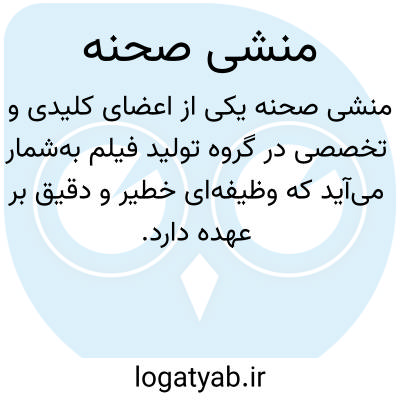 منشی صحنه یکی از اعضای کلیدی و تخصصی در گروه تولید فیلم به‌شمار می‌آید که وظیفه‌ای خطیر و دقیق بر عهده دارد. وی مسئولیت ثبت علمی و مدون تمامی جزئیات مربوط به هر نما، از جمله موقعیت بازیگران، لباس‌ها، چیدمان صحنه، لوازم صحنه و حتی دیالوگ‌های گفته‌شده در هر برداشت را بر عهده دارد. این اطلاعات به‌صورت دقیق و با جزییات کامل در برگه‌های گزارش صحنه ثبت می‌شود تا مرجعی معتبر و قابل اطمینان برای تمام بخش‌های فنی و هنری تولید فراهم گردد.