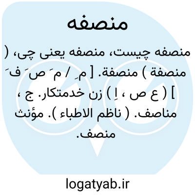 ( منصفة ) منصفة. [ م ِ / م َ ص َ ف َ ] ( ع ص، اِ ) زن خدمتکار. ج، مناصف. ( ناظم الاطباء ). مؤنث منصف. ( از منتهی الارب ) ( از آنندراج ) ( از اقرب الموارد ). رجوع به منصف شود.