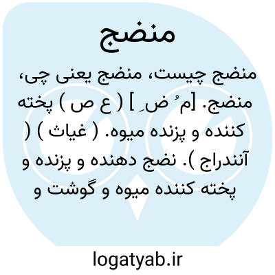 منضج. [ م ُ ض َ ] ( ع ص ) نضج داده شده و پخته شده. || بار رسیده شده. ( ناظم الاطباء ).