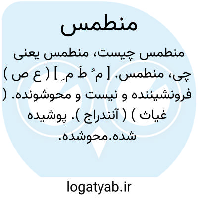 منطمس. [ م ُ طَ م ِ ] ( ع ص ) فرونشیننده و نیست و محوشونده. ( غیاث ) ( آنندراج ). پوشیده شده.محوشده. ناپدیدگشته و پاک شده و ازمیان رفته ( چون خط و اثر و جز آن ). ( یادداشت مرحوم دهخدا ):