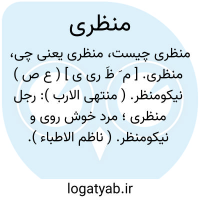 منظری. [ م َ ظَ ری ی ] ( ع ص ) نیکومنظر. ( منتهی الارب ): رجل منظری؛ مرد خوش روی و نیکومنظر. ( ناظم الاطباء ). منظرانی. ( اقرب الموارد ). رجوع به منظرانی شود.