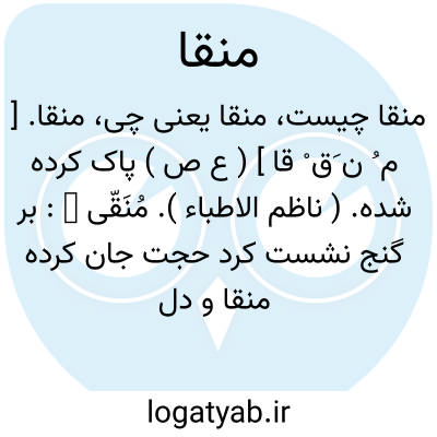 منقا. [ م ُ ن َق ْ قا ] ( ع ص ) پاک کرده شده. ( ناظم الاطباء ). مُنَقّی ̍:
