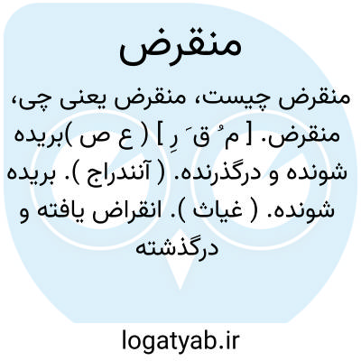 منقرض. [ م ُ ق َ رَ ] ( ع اِ ) انقراض. پایان. نهایت. آخر.وقت انقراض: ذکر هر یک تا منقرض زمان چون چشمه خورشید تابان خواهد بود. ( جهانگشای جوینی ).