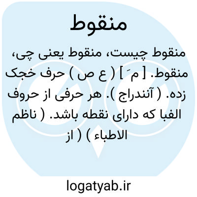 منقوط. [ م َ ] ( ع ص ) حرف خجک زده. ( آنندراج ). هر حرفی از حروف الفبا که دارای نقطه باشد. ( ناظم الاطباء ) ( از اقرب الموارد ). نقطه دار. بانقطه. معجم. مقابل مهمل. ( یادداشت مرحوم دهخدا ): اگر شاعری... حرف عطل یا منقوط لازم دارد هرآینه از نوع تعسفی خالی نباشد. ( المعجم چ مدرس رضوی چ 1 ص 317 ). در ضمن آن چیزی از قلب و تصحیف و استعمال حروف عطل یا منقوط لازم دارد. ( المعجم چ دانشگاه ص 432 ).