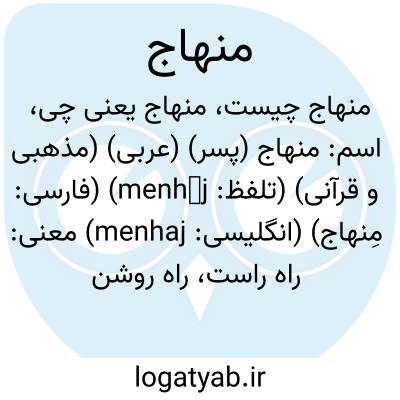اسم: منهاج (پسر) (عربی) (مذهبی و قرآنی) (تلفظ: menhāj) (فارسی: مِنهاج) (انگلیسی: menhaj)
