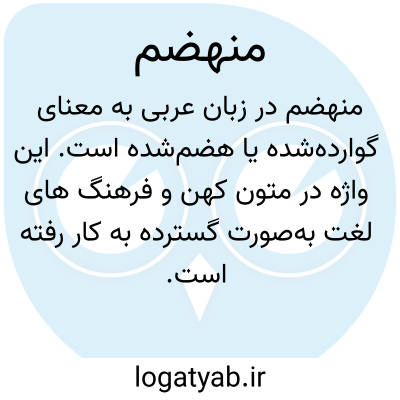 منهضم در زبان عربی به معنای گوارده‌شده یا هضم‌شده است. این واژه در متون کهن و فرهنگ های لغت به‌صورت گسترده به کار رفته و در مفهوم اصلی خود، اشاره به غذایی دارد که فرآیند هضم را به‌طور کامل طی کرده و در بدن تحلیل رفته است. برای نمونه، در متونی چون سندبادنامه آمده است: اول غذا تا منهضم نگردد، دیگر زن حامله تا حمل ننهد که بر ضرورت پایان یافتن هضم غذا پیش از مصرف مجدد تأکید دارد.