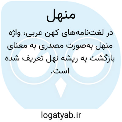 در لغت‌نامه‌های کهن عربی، واژهٔ منهل به‌صورت مصدری به معنای بازگشت به ریشهٔ نَهَل تعریف شده است. این واژه در قالب اسم، به معنای آبشخور، محل نوشیدن آب و نیز نخستین جرعه‌ای است که از آب نوشیده می‌شود. به‌طور مشخص، به مکانی گفته می‌شود که انسان‌ها یا چهارپایان برای نوشیدن آب به آنجا رجوع می‌کنند. در متون تاریخی و لغوی، از مَنْهَل به‌عنوان چشمه‌ای در دل چراگاه‌ها یا صحرا یاد شده که رمه‌ها پس از چرا به سوی آن بازگردانده می‌شوند تا سیراب شوند. این معنا از ریشهٔ نَهَل به‌معنای سیراب شدن اخذ گردیده است. جمع این کلمه به‌صورت مَناهِل به کار می‌رود و در ادبیات کهن، گاه به‌جای واژگانی چون مَشْرَب، مَشْرَع، آبخور، شَریعَه و مَوْرِد قرار می‌گیرد. به‌طور خلاصه، منهل در زبان فصیح و ادبی، مفهومی فراتر از یک چشمهٔ ساده دارد و اشاره به محلّ تجمّع و زندگانی دارد که حیات انسان و دام بدان وابسته است. این کلمه بار فرهنگی و تمدنی عمیقی دارد و نماد منبع آب و مایهٔ حیات در مناطق خشک و بیابانی به‌شمار می‌آید.
