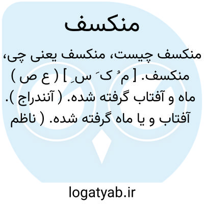 منکسف. [ م ُ ک َ س ِ ] ( ع ص ) ماه و آفتاب گرفته شده. ( آنندراج ). آفتاب و یا ماه گرفته شده. ( ناظم الاطباء ). گرفته.پوشیده. محجوب. ( یادداشت مرحوم دهخدا ):