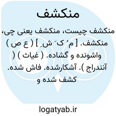 منکشف. [ م ُ ک َ ش ِ ] ( ع ص ) واشونده و گشاده. ( غیاث ) ( آنندراج ). آشکارشده. فاش شده. کشف شده و آشکارشده و ظاهر و نمایان شده. ( ناظم الاطباء ). پیدا. گشاده. ظاهرشده.( یادداشت مرحوم دهخدا ): آفتاب یقین از حجاب شبهت و نقاب ریبت منکشف شود. ( سندبادنامه ص 85 ).