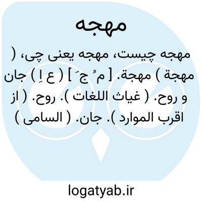( مهجة ) مهجة. [ م ُ ج َ ] ( ع اِ ) جان و روح. ( غیاث اللغات ). روح. ( از اقرب الموارد ). جان. ( السامی ) ( مهذب الاسماء ) ( آنندراج ). || خون یا خون دل. ( از اقرب الموارد ) ( آنندراج ). خون میان دل. ( غیاث اللغات ). خون که در درون دل است. سویداء. حبةالقلب.ثمرةالقلب. ( از یادداشتهای مؤلف ). || خلاصه هرچیز. ( غیاث اللغات ). خالص از هرچیزی. ازهری گفته است: بذلت له مهجتی؛ أی بذلت له نفسی و خالص ما اقدر علیه. ج، مُهَج، مُهَجات. ( از اقرب الموارد ).