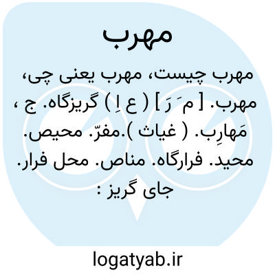 ( اسم ) محل فرار گریزگاه: [ روباه گفت: مخلص و مهرب نزدیک و مهیا بچه ضرورت این محنت اختیار کرده ای ? ] جمع: مهارب.