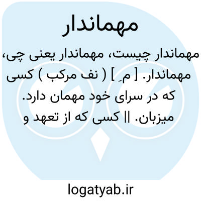 ( صفت ) ۱ - کسی که در سرای خود مهمان دارد. ۲ - آنکه از مهمانان پذیرایی کند. ۲ - ماموری متصدی پذیرایی فرستادن خارجی و غیره که موظف بود آنان را از میان شهرها و ۴ - مهمان دیه ها عبور دهد و بمقصد رساند. نواز: [ بوسفیان گفت ما قومی مهمان داران و مهمان دوستانیم. ]