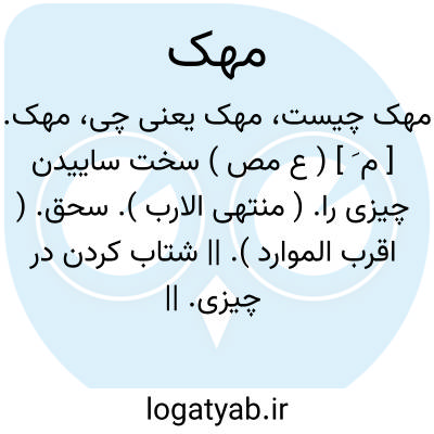 مهک. [ م َ ] ( ع مص ) سخت ساییدن چیزی را. ( منتهی الارب ). سحق. ( اقرب الموارد ). || شتاب کردن در چیزی. || مانده کردن در جماع زن را و نرم نمودن. ( منتهی الارب ).