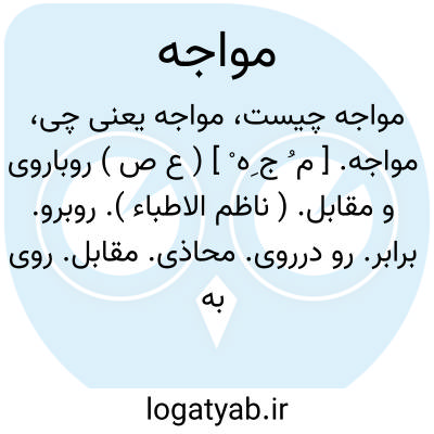 مواجه. [ م ُ ج ِه ْ ] ( ع ص ) روباروی و مقابل. ( ناظم الاطباء ). روبرو. برابر. رو درروی. محاذی. مقابل. روی به روی. ( یادداشت مؤلف ).