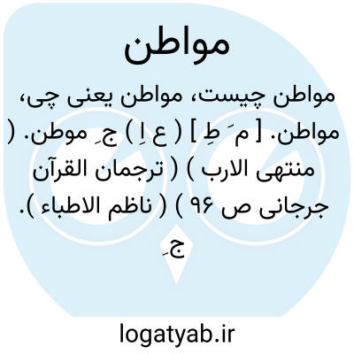مواطن. [ م َ طِ ] ( ع اِ ) ج ِ موطن. ( منتهی الارب ) ( ترجمان القرآن جرجانی ص 96 ) ( ناظم الاطباء ). ج ِ موطن: مواطن مکه؛ مواقف آن. مواطن حرب؛ مشاهد آن. ( یادداشت مؤلف ): لقد نصرکم اﷲ فی مواطن کثیرة. ( قرآن 25/9 ). رجوع به موطن شود.