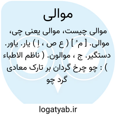 موالی. [ م ُ ] ( ع ص، اِ ) یار. یاور. دستگیر. ج، موالون. ( ناظم الاطباء ):