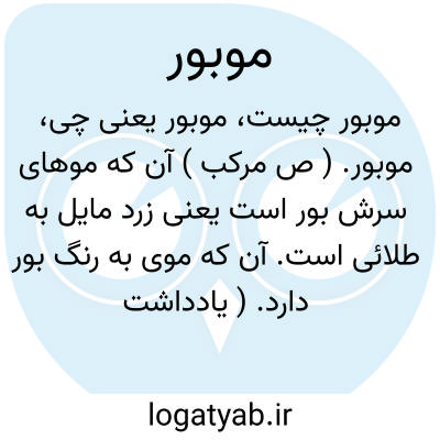 موبور. ( ص مرکب ) آن که موهای سرش بور است یعنی زرد مایل به طلائی است. آن که موی به رنگ بور دارد. ( یادداشت مؤلف ). و رجوع به بور شود.