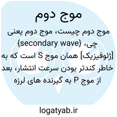 {secondary wave} [ژئوفیزیک] همان موج S است که به خاطر کندتر بودن سرعت انتشار، بعد از موج P به گیرنده های لرزه ای می رسد