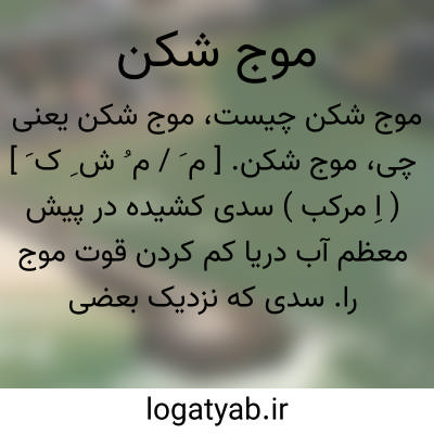 موج شکن. [ م َ / م ُ ش ِ ک َ ] ( اِ مرکب ) سدی کشیده در پیش معظم آب دریا کم کردن قوت موج را. سدی که نزدیک بعضی بندرها بندند برای کم قوت کردن موجهای دریا. ( یادداشت مؤلف ). دیواره ای محکم که برابر آب دریا بندند تا فشار موج را بگیرد و از زیر آب رفتن زمینهای ساحل به هنگام طوفان جلوگیری کند.