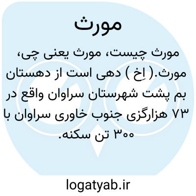 مورث.( اِخ ) دهی است از دهستان بم پشت شهرستان سراوان واقع در 73 هزارگزی جنوب خاوری سراوان با 300 تن سکنه. آب آن از چشمه و راه آن مالرو است. ساکنان آن از طایفه درازانی هستند. ( از فرهنگ جغرافیائی ایران ج 8 ).