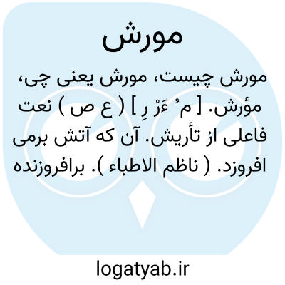 مورش. [ رِ ] ( اِ ) مهره کوچک و ریزه که زنان به رشته کشیده و از آن دست بند و گردن بند سازند و به تازی خرز گویند. ( از برهان ) ( ناظم الاطباء ). مهره ریز که رشته کنند و زنان در دست و گردن کنند. ( انجمن آرا ) ( آنندراج ). خرزه. مهره، شخلبه، مورش گربه. ( یادداشت مؤلف ): جوسقی بنا کرده است مثل مناره ای درازی آن سی گز و بر سر آن نیزه ای نشانده است و بر سر آن دو مورش آویخته است که یکی منع برق و سرما می کند و یکی منع بادها. ( ترجمه تاریخ قم ص 67 ).