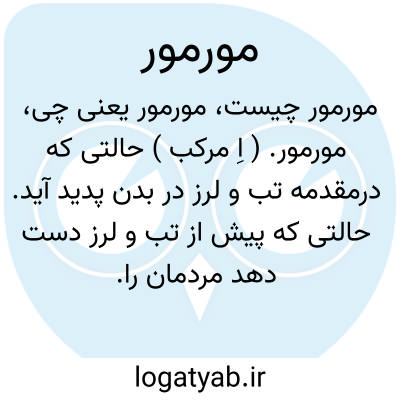 - مورمور کردن تن؛ حالتی که پیش از آمدن تب لرزه در بدن پدید آید چنانکه گویی سوزنهای بسیار از یخ بر تن فرود آرند. ( یادداشت مؤلف ).