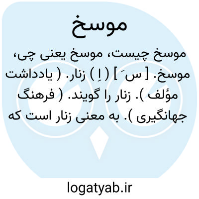 موسخ. [ س َ ] ( اِ ) زنار. ( یادداشت مؤلف ). زنار را گویند. ( فرهنگ جهانگیری ). به معنی زنار است که بر گردن اندازند و بر میان هم بندند. ( انجمن آرا ) ( آنندراج ) ( برهان ):