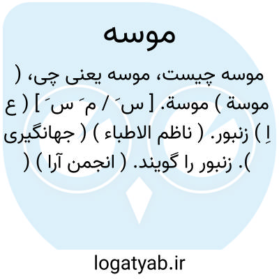 ( موسة ) موسة. [ س َ / م َ س َ ] ( ع اِ ) زنبور. ( ناظم الاطباء ) ( جهانگیری ). زنبور را گویند. ( انجمن آرا ) ( آنندراج ). به معنی زنبور باشد و آن پرنده ای است گزنده. ( برهان ).