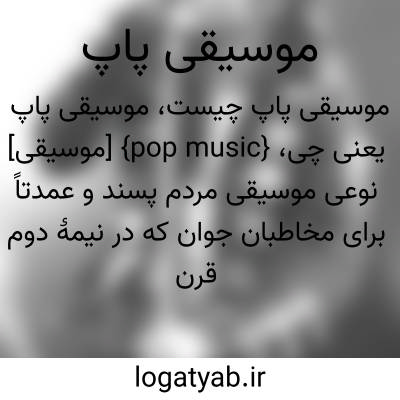 {pop music} [موسیقی] نوعی موسیقی مردم پسند و عمدتاً برای مخاطبان جوان که در نیمۀ دوم قرن بیستم با الهام از بلوز (Blues ) و دیگر موسیقی ها در کشورهای انگلوساکسون شکل گرفت و سپس در سطح جهان رایج شد