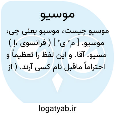 موسیو. [ م ُ ی ُ ] ( فرانسوی،اِ ) مسیو. آقا. و این لفظ را تعظیماً و احتراماً ماقبل نام کسی آرند. ( از آنندراج ). و رجوع به مسیو شود. || در تداول عوام مطلق فرنگی و نیز ارامنه و آسوریان را گویند.