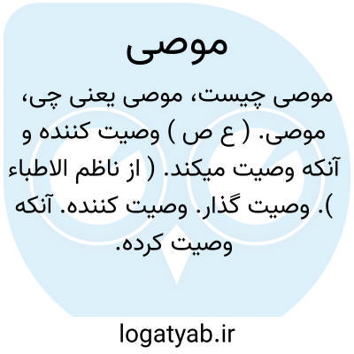 موصی. ( ع ص ) وصیت کننده و آنکه وصیت میکند. ( از ناظم الاطباء ). وصیت گذار. وصیت کننده. آنکه وصیت کرده. ( یادداشت مؤلف ).وصیت کننده. و شرط است در آن کمال، عقل، رفع حجر و بلوغ. وصیت مجنون و سکران و آنکه خود را مجروح کند به جرح مهلک باطل است. ( از فرهنگ علوم نقلی تألیف سیدجعفر سجادی ). || اندرزکننده. ( آنندراج ).