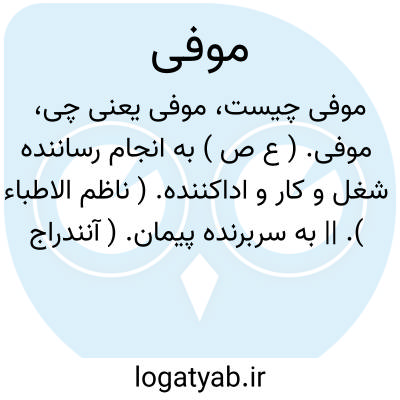موفی. [ م ُ وَف ْ فا ] ( ع ص ) اداکرده شده و پرداخته شده و به جاآورده شده. ( ناظم الاطباء ).