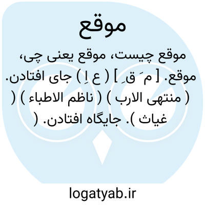 ( اسم ) ۱ - جای واقع شدن چیزی محل وقوع. ۲ - جای فرود آمدن. ۳ - موقع جغرافیایی جمع: مواقع.یا موقع جغرافیایی. موقع جغرافیایی شهری یا نقطه ای در روی کره زمین عبارتست از طول و عرض جغرافیایی آن.اگر طول و عرض جغرافیایی نقطه ای معین باشد موقع آنرا در روی کره زمین میتوان پیدا کرد ( طول جغرافیایی عرض جغرافیایی ). توضیح بجای این کلمه گاه [ موقعیت ] بکار برند.