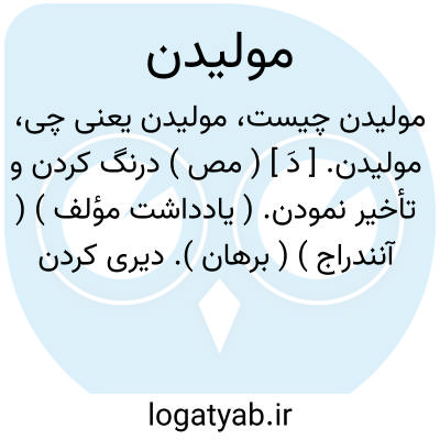 ( مصدر ) ۱ - درنگ کردن تاخیر کردن: [ گریزان ز باد اندر آمد باب به آید ز مولیدن اندر شتاب... ] [ بمولیم تا آن سپاه گران بیایند گردان و جنگ آوران... ] [ نمولیم تا نزد خسرو شوند بدرگاه او لشکری نو شوند. ] ۲ - خزیدن و لغزیدن.