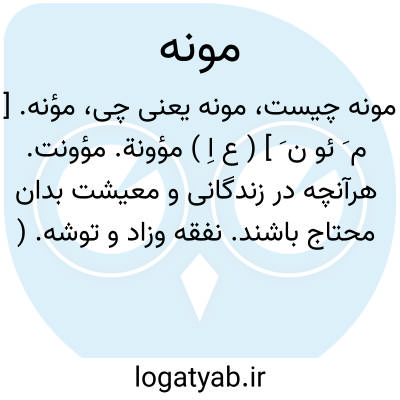 مؤنه. [ م َ ئو ن َ ] ( ع اِ ) مؤونة. مؤونت. هرآنچه در زندگانی و معیشت بدان محتاج باشند. نفقه وزاد و توشه. ( ناظم الاطباء ). و رجوع به مؤنة شود.