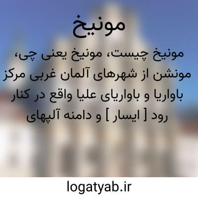 مونیخ یا به آلمانی مونشن، ( به آلمانی: München ) ( آوا راهنما·اطلاعات ) شهری در جنوب شرقی آلمان بر کرانه رودخانه ایسار و شمال رشته کوه آلپ است. مونیخ سومین شهر بزرگ آلمان پس از برلین و هامبورگ است. این شهر با جمعیت ۴/۳۴۰/۸۳۲ میلیون نفر و مساحت ۳۱۰٫۴۳ کیلومتر مربع، مرکز ایالت بایرن کشور آلمان به حساب می آید. مونیخ یکی از گران قیمت ترین، لوکس ترین و با کیفیت ترین شهرهای اروپا و جهان برای زندگی و نیز گردشگری به شمار می رود.