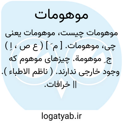 موهومات. [ م َ ] ( ع ص، اِ ) ج ِ موهومة. چیزهای موهوم که وجود خارجی ندارند. ( ناظم الاطباء ). || خرافات. عقاید خرافی. اعتقادات خرافی و باطل و بی اساس. انیاب اغوال. فسونها.نیش غولها. ( یادداشت مؤلف ). و رجوع به موهوم شود.