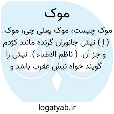 موک. ( اِ ) نیش جانوران گزنده مانند کژدم و جز آن. ( ناظم الاطباء ). نیش را گویند خواه نیش عقرب باشد و خواه نیش چیزهای دیگر. ( برهان ). || میش را گویند. ( فرهنگ جهانگیری ). میش بود. ( فرهنگ اسدی ). به معنی میش است و در برهان به معنی نیش آمده. ( آنندراج ) ( انجمن آرا ). || پیش. این کلمه را که فرهنگها به معنی میش، پیش، و نیش به اختلاف نوشته اند تنها یک شاهد مغلوط عسجدی در فرهنگ اسدی ( چ اقبال ص 303 ) به صورت زیر دارد:
