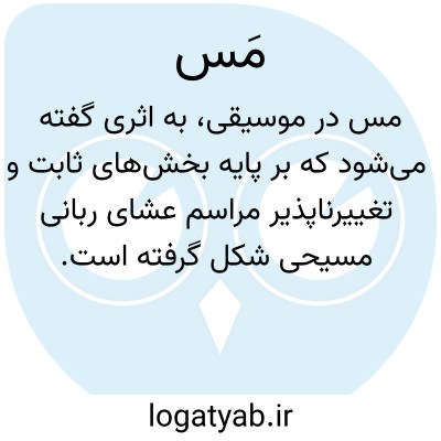 مس (موسیقی). مَس فرمی از آهنگسازی روحانی و مقدس می باشد که تنظیم کُرال مجموعه ای ثابت از مناجات های عشاء ربانی به موسیقی ست. اکثر مَس ها بر روی مناجات های لاتینی، زبان مقدس مناجات های کلیسای کاتولیک روم، تنظیم شده اند. تعداد قابل توجهی مَس نیز به زبان کشورهای غیر کاتولیک که در آن ها عبادت به زبان های بومی انجام می شود نوشته شده است. برای مثال مَس های زیادی به زبان انگلیسی برای کلیسای انگلستان نوشته شده است. مَس های موسیقایی نام خود را از مناجات های کاتولیک با همین نام مَس ( به لاتین "the Mass" ) می گیرند، که ممکن است بعد از نام مَس نام دیگری نیز داشته باشند، نظیر میسا سولمنیس ساخته بتهوون.