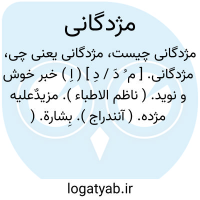 ( اسم ) ۱- انعامی که شنوند. خبری خوش بخبر آورنده دهد انعام بخشش: مژدگانی بده ای خلوتی نافه گشای. که ز صحرای ختن آهوی مشکین آمد. ( حافظ ) ۲ - خبر خوش مژده بشارت.
