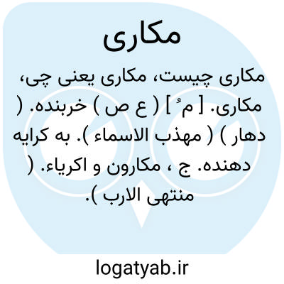 مکاری. [ م ُ ] ( ع ص ) خربنده. ( دهار ) ( مهذب الاسماء ). به کرایه دهنده. ج، مکارون و اکریاء. ( منتهی الارب ). کسی که اسب و شتر و غیره به کرایه دهد. ( غیاث ). کسی که اسب و استرو خر به کرایه برد. ( آنندراج ). خربنده و کرایه دهنده یعنی آن کس که خر و اسب و اشتر کرایه می دهد. ( ناظم الاطباء ). کرایه دهنده ستور. ج، مکارون و گویند هؤلاء المکارون و ذهبت الی المکارین، و چون به ضمیر متصل متکلم وحده اضافه گردد گویند هذا مکاری [ م ُ ری ی َ ]، و همچنین است در جمع هولاء مکاری [ م ُ ری ی َ ] که لفظ واحد و تقدیر مختلف است. اکنون مکاری غالباً به خرکچی و قاطرچی ( خربنده و استربان ) گفته می شود. ( از اقرب الموارد ). آنکه ستور چون خر و استر به کرایه دهد. چاروادار. ( یادداشت به خط مرحوم دهخدا ). چارپادار. کسی که به وسیله چارپایان اهلی مانند اسب و خر و قاطر و یابو مسافر و بار حمل و نقل می کند. خربنده. خرکچی. این کلمه در زبان عوام مَکّاری به همان معنی خرکچی و خربنده تلفظ می شود و گاه برای اشخاص به صورت لقب در می آید مانند حاجی مکاری. ( فرهنگ لغات عامیانه جمال زاده ): مردم آنجا بیشترین مکاری باشند. ( فارسنامه ابن البلخی ص 144 ). مردم آن سلاح ور باشد و مکاری. ( فارسنامه ابن البلخی ص 145 ). مکاریان آن بارها را به سوی خانه خود بردن اولیتر دیدند. ( کلیله و دمنه ). بدان مرد مکاری ماند که بار خر یک سو سبک کند و یک سو سنگی. ( مرزبان نامه چ 3 قزوینی ص 279 ).