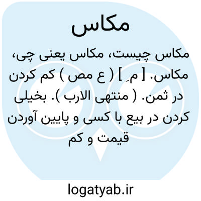 مکاس. [ م ُ ] ( اِ ) نهایت تأکید و مبالغه کردن را گویند در کاری و معامله ای و طلبی که پیش کسی باشد و آن را به عربی استقصا خوانند. ( برهان ). نهایت تأکید و مبالغه در کاری و ابرام و تقاضا. ( ناظم الاطباء ). در فرهنگ انجمن آرای ناصری نوشته که مکاس و مکیس به ضم اول به معنی تأکید و مبالغه کردن در معامله و به این معنی عربی است و به معنی خراج و باج گیرنده و عشور گیرنده که در فرهنگ جهانگیری آمده به کسر میم هم عربی است و ماکس اسم فاعل آن است یعنی ده یک گیرنده و خراج ستاننده. ( آنندراج ). و رجوع به ماده قبل و مکیس شود. || زری و چیزی را گفته اند که به رسم دستور و باج و راهداری از آینده و رونده بگیرند. ( برهان ). باج و راهداری. ( ناظم الاطباء ). || فاعل این عمل را نیز گفته اند که باج گیرنده و عشار و راهدار باشد. ( برهان ). باج گیر و راهدار و تحصیل دار. ( ناظم الاطباء ). به این معنی مَکّاس و عربی است. ( حاشیه برهان چ معین ). و رجوع به مَکّاس شود. || در بیت زیر ظاهراً بمعنی آنچه که فروشنده پس از پایان معامله کلان خریدار را دهد بی دریافت بهائی: