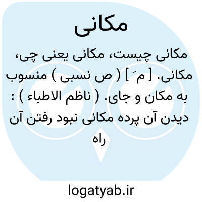 ( صفت ) منسوب به مکان: [ پس وصف حرکت مکانی کرد. ] ( مصنفات بابا افضل ۳۹۲:۲ )