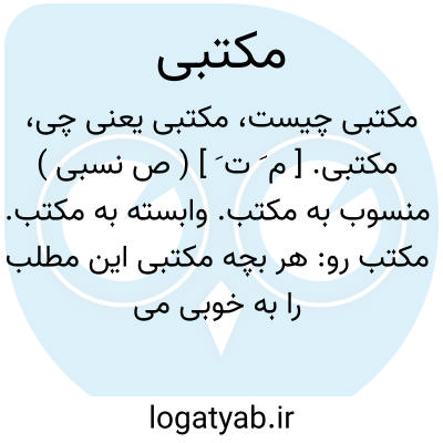 ( صفت ) ۱ - منسوب به مکتب ۲ - شاگردی که به مکتب رود: [ این را که هر بچه مکتبی هم میداند و محتاج به پرسیدن نیست ] ( جمال زاده. سروته یک کرباس. ۱۲٠ )