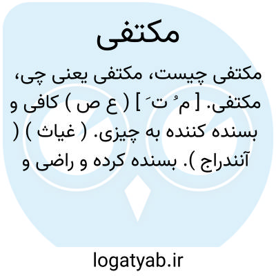 مکتفی ٔ. [ م ُ ت َ ف ِءْ ] ( ع ص ) برگرداننده خنور را و نگونسار کننده. ( آنندراج ). آن که برمی گرداند خنور را و نگونسارمی سازد. ( ناظم الاطباء ) ( از منتهی الارب ) ( از اقرب الموارد ). || راضی و خشنود. ( منتهی الارب ).