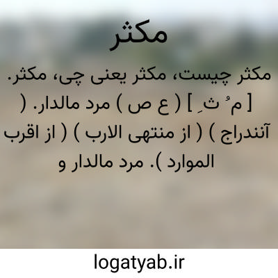 ( اسم ) ۱ - بسیار آورنده کثیر آورنده. ۲ - آنکه بسیار نویسد کثیر التالیف. یا مکثر غیر مجید. نویسنده یا شاعری که زیاد نویسد و گوید و آثارش نیکو نباشد مقابل مقل غیر مجید مکثر مجید. یا مکثر مجید. نویسنده یا شاعری که زیاد نویسد و گوید و آثارش نیکو باشد مقابل مقل مجید مکثر غیر مجید. ۳ - زیاد کننده. ۴ - توانگر مالدار.